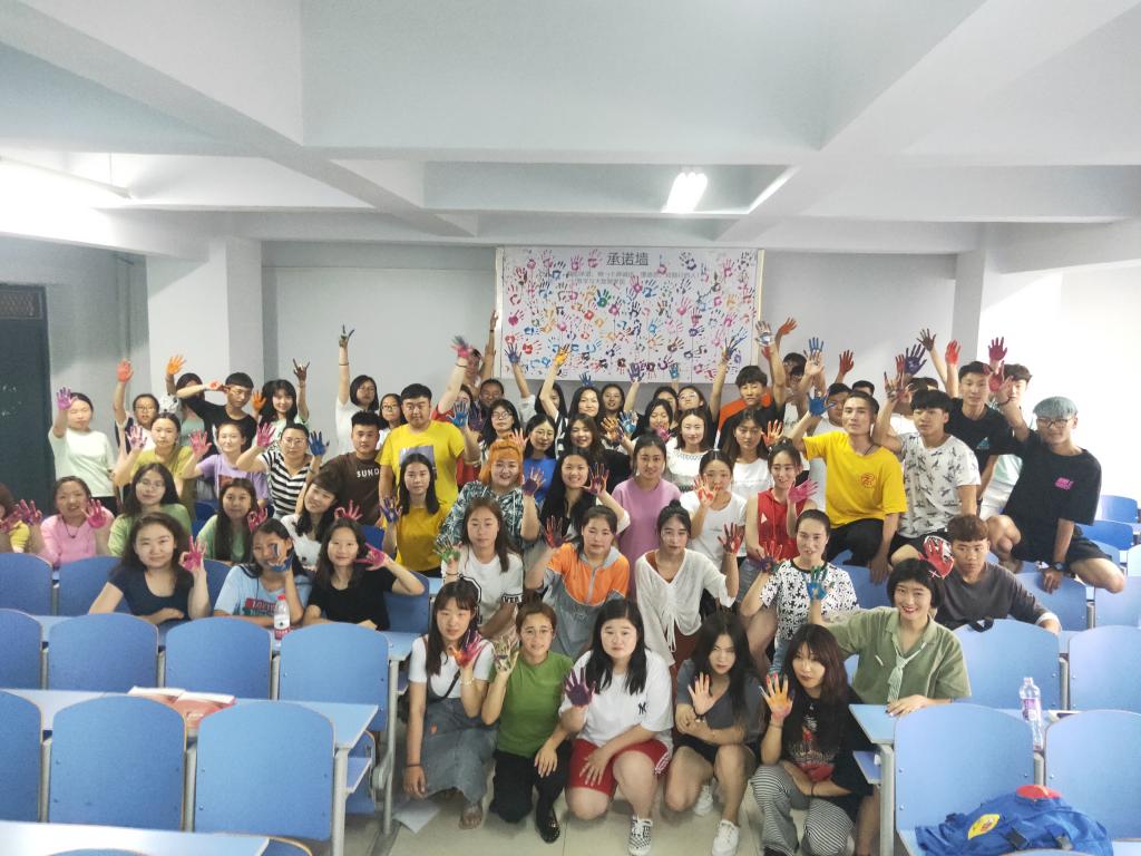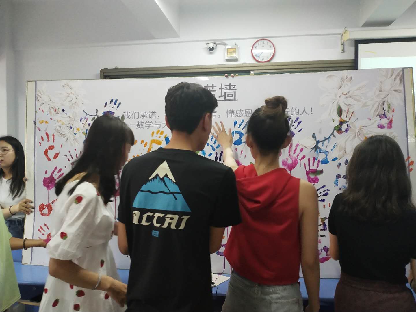 活动最后环节全体同学承诺自己要做一个讲诚信,懂感恩,知励行的人并在承诺墙上盖手印。承诺墙上留下了参加活动的每一位同学的手印,体现了数学与大数据学院学子们对自己诚信做人、砥砺前行的坚定信心。