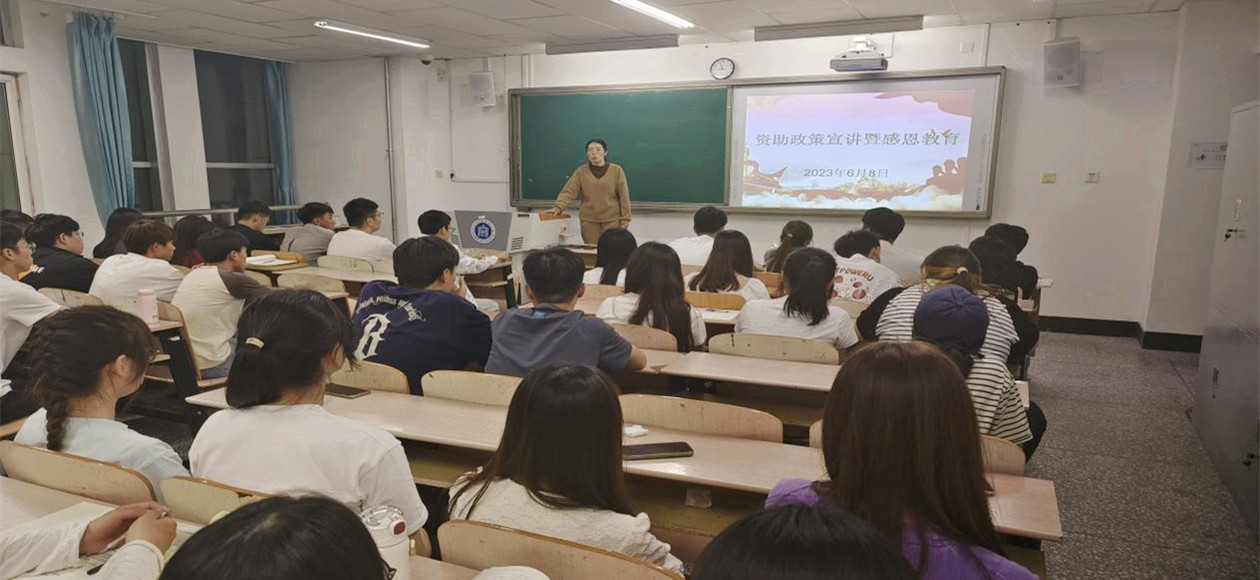 数学科学学院学生工作办公室主任刘爱春为学生进行资助政策宣讲暨感恩教育,培养学生的爱党、爱国、爱校及感恩意识,激励他们成为对社会有益的人。