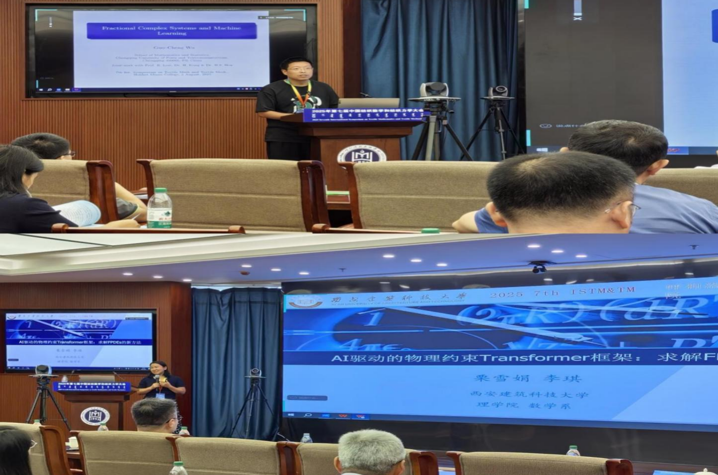主题报告环节,重庆邮电大学理学院吴国成教授和西安建筑科技大学栗雪娟教授分别以“分数阶复杂系统的机器学习建模”“AI驱动的物理约束Transformer框架:求解分数阶偏微分方程的新方法”为题作报告。
