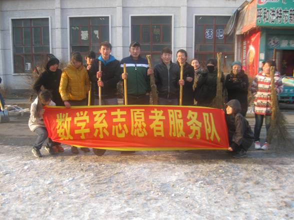 数学系系开展学雷锋团日活动,以“永远的雷锋,永远的雷锋精神”为指导精神大力弘扬雷锋精神,在学院团委的领导下全体学生在校园内清理了垃圾和积雪,清洁了辖区建筑外墙壁、电线杆的小广告,同时还打扫了所辖教学区(办公区)的卫生,对部分损坏的桌椅进行了维修。