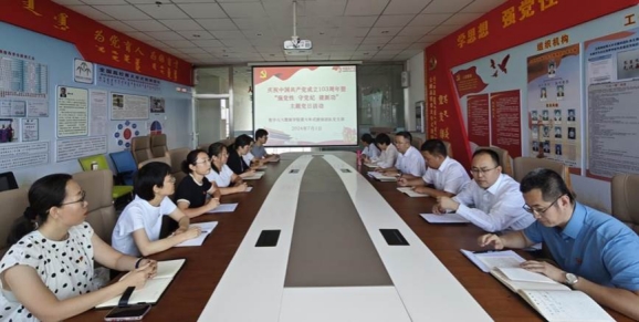 为庆祝中国共产党成立103周年,推动党纪学习教育走深走实,增强支部凝聚力战斗力,7月1日,数学与大数据学院黄大年式教师团队党支部在综合楼807党员活动室举行庆祝中国共产党成立103周年暨“强党性,守党纪,建新功”主题党日活动,活动由学院党总支书记、黄大年式教师团队党支部书记白秀主持,全体教职工党员参加。