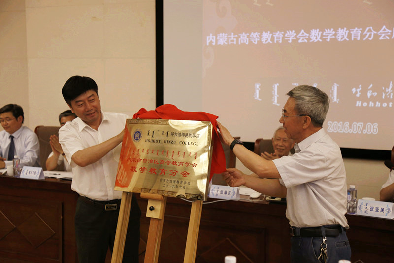 校党委孙国权书记和内蒙古高等教育学会会长给分会揭牌