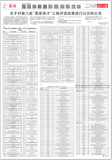 10. 人才工程:关于对第八批“草原英才”工程评选结果进行公示的公告(获得者:额尔敦布和)