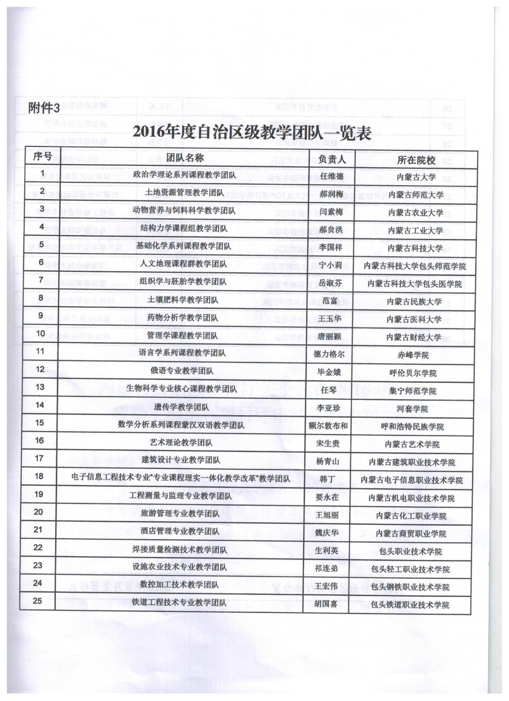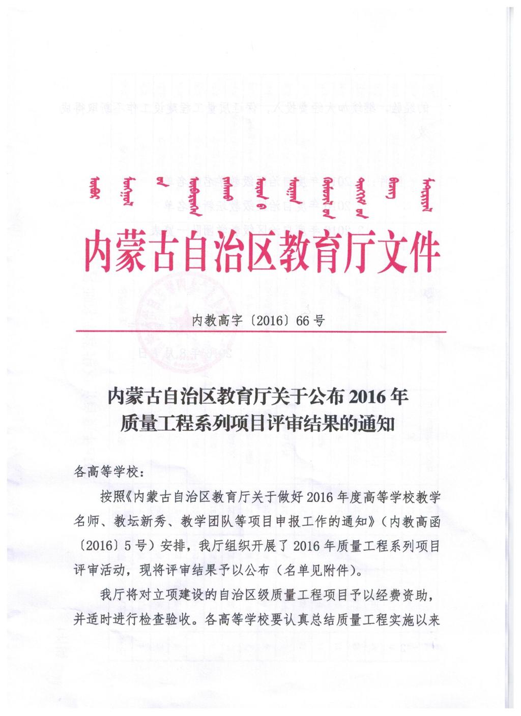 4. 团队建设:内蒙古自治区教育厅关于公布2016年质量工程系项目评审结果的通知—教学团队(负责人:额尔敦布和)
