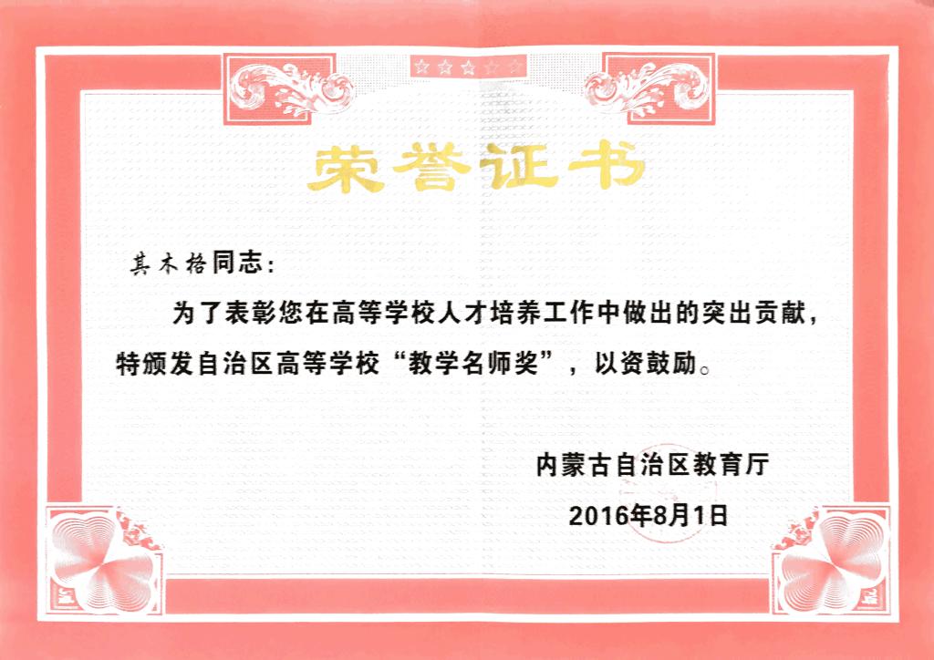 1. 围绕“四有”教师指向,注重团队建设。beat365官网“数学教学科研蒙汉双语教师团队”获批“全国高校黄大年式教师团队”;“数学分析系列课程蒙汉双语教学团队”、“微分方程系列课程教学团队”和“应用数学与大数据实验教学中心”入内蒙古高等学校教学团队和实验教学示范中心,起到了示范作用。现有国务院特殊津贴专家1人、自治区“教学名师”2人及“教坛新秀”1人,内蒙古高等教育学会数学教育分会理事长1人,中国少数民族教育学会数学教育专业委员会理事1人……。额尔敦布和等获内蒙古乌兰夫基金会奖励;《内蒙古日报》、《民族画报》报道阿拉坦仓事迹;网易新闻等报道beat365官网黄大年式教师团队。