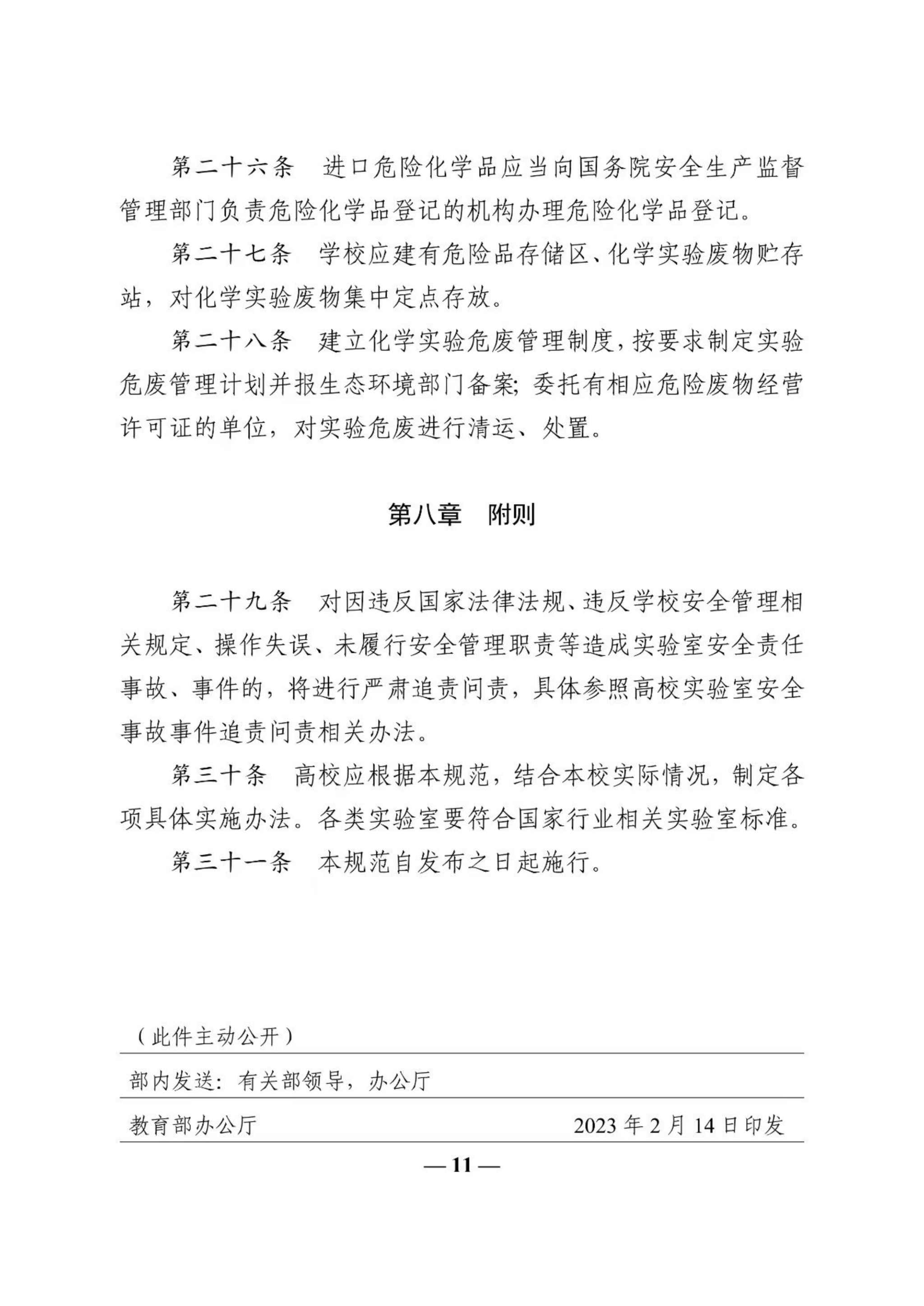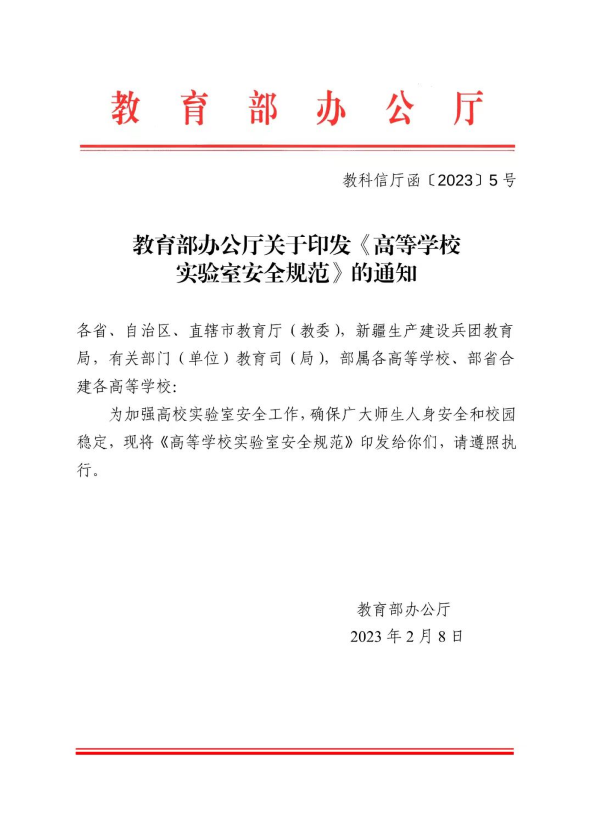 教育部办公厅关于印发《高等学校实验室安全规范》的通知