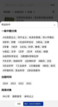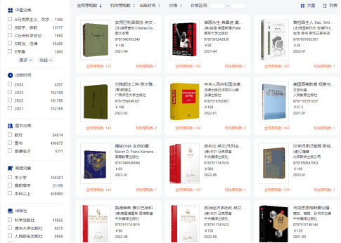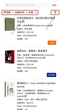 3.根据中图分类、出版时间、阅读对象、出版社等条件进行过滤筛选,可以根据荐购数、出版时间、价格进行排序。