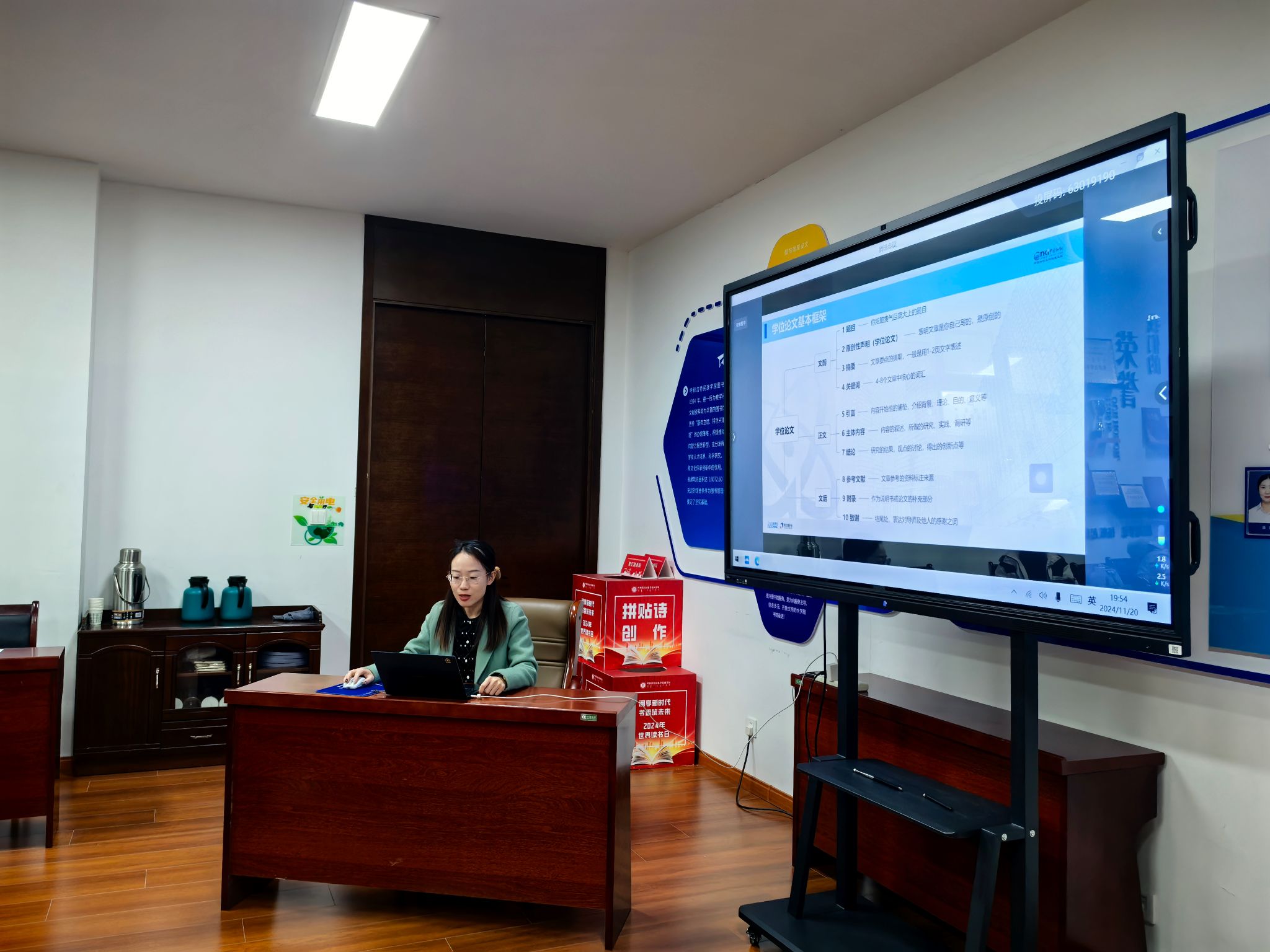 王欣老师详细介绍了学术论文的分类、学术论文的基本特征、学术论文的结构以及文献资料的检索方法。她建议同学们在写作前要广泛阅读相关文献,了解研究现状和前沿动态,这样既可以避免重复他人的工作,又能找到研究的创新点。她强调论文写作过程中须注意引用、图表等细节问题,以避免抄袭等学术不端行为。