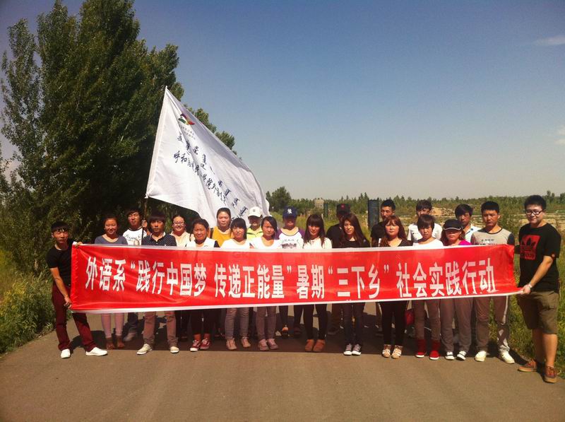 6月24日,外语系团总支书记包仓老师带领20余名同学赴鄂尔多斯市恩格贝生态示范区,开始了为期30天的暑期“三下乡”大学生社会实践活动,本次实践活动的主题是:“践行中国梦 传递正能量—为建设美丽家乡贡献力量”。