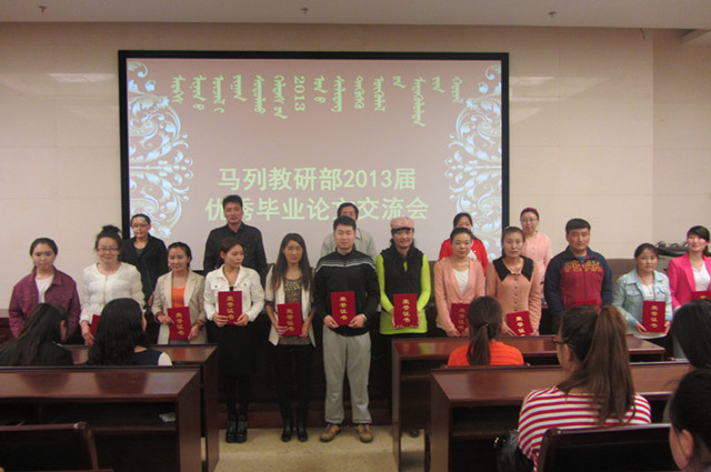 学生论文交流结束后,额斯日格仓教授对我部今年毕业生论文和此次会议情况进行了总结,并对同学们三年以来取得的成绩给予了肯定和鼓励的同时也对论文撰写过程中需要改进的地方提出了意见和建议。