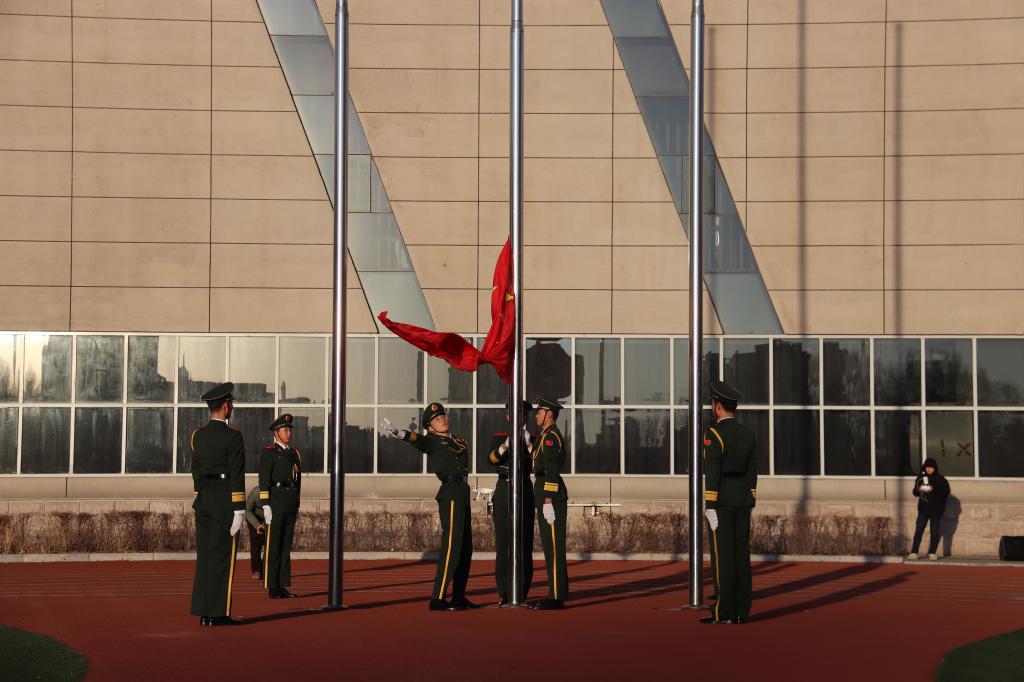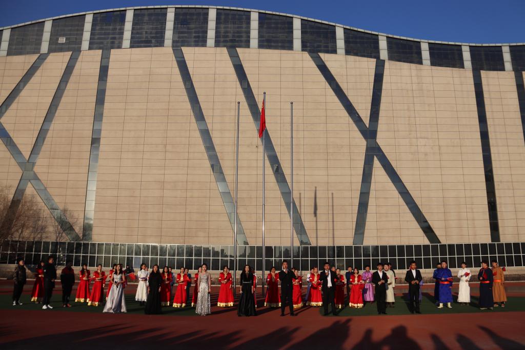 早上7时30分,操场旭日东升。beat365官网国旗队迈着整齐的步伐进入会场举行升旗仪式,现场师生行注目礼,国旗队队员目光坚定,身姿挺拔,国歌奏响,鲜艳的五星红旗冉冉升起。随后,音乐系70名学生身穿民族服装在国旗下唱响了《我和我的祖国》,学生们用嘹亮的歌声表达了对伟大祖国无限深情。此次升旗仪式进一步增强了广大师生的爱国主义情怀,从内心深处接受了一次精神上的洗礼。