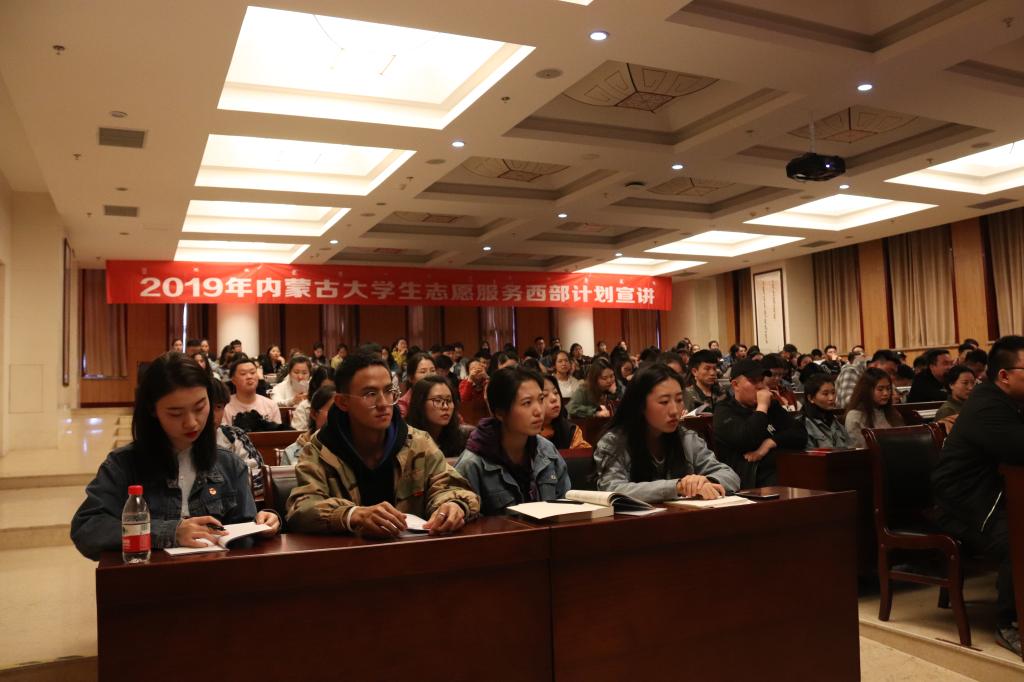 4月12日下午,2019年大学生志愿服务西部计划宣讲会在图书馆一楼报告厅成功举办,宣讲会邀请内蒙古建筑职业技术学院团委副书记、学工处副处长韩和平,大学生志愿服务西部计划内蒙古项目管理办公室高培馨,新疆生产建设兵团第十三师团委副书记吕雅琴及2019年兵团大学生志愿服务西部计划优秀志愿者成员等,各院系240余名毕业生参加活动。