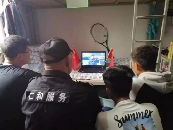 同学们在宿舍观看直播