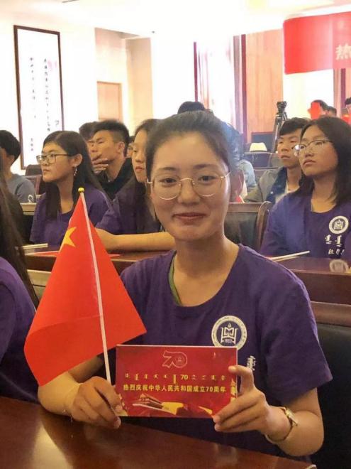 同学们与“庆祝中华人民共和国成立70周年”卡片同框留念