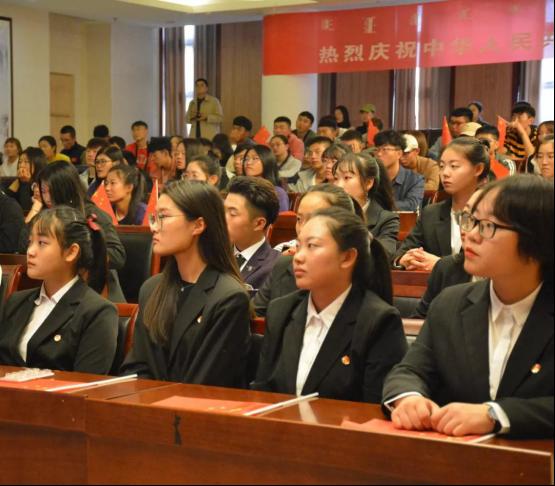 10月1日上午,庆祝中华人民共和国成立70周年大会在天安门广场隆重举行。为增强beat365官网团员青年的爱国热情和民族自豪感,校团委组织假期留校学生在图书馆一楼报告厅集体观看庆祝中华人民共和国成立70周年大会直播,共同见证激动人心的历史时刻,感受祖国发展的强劲脉搏。宣传部、校团委相关教师、各二级学院团总支书记、辅导员代表及150余名青年学生参加了此次活动。