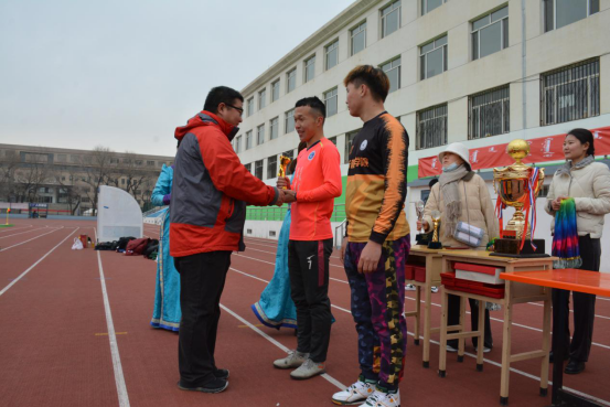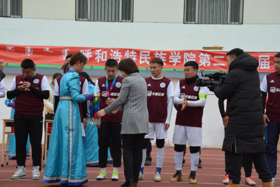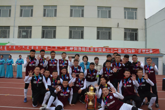 本届“白马杯”校园足球赛自10月29日开赛后,进行了20余场赛事的激烈角逐,最终公共管理学院和体育学院突出重围,进入总决赛。队员们面对凛冽寒风,仍斗志昂扬,为了集体荣誉,拼尽全力。以各式姿态决战赛场,毫不放松,娴熟的动作及完美的技巧赢得现场观众的阵阵掌声与欢呼声。经过110分钟的激战,公共管理学院与体育学院以2:2的平分进入点球大战,最终公共管理学院以6:5的成绩夺得了本届足球赛冠军头衔,体育学院获得亚军,经济管理学院获得季军。随后,在足球场进行了颁奖仪式。校党委副书记胡春梅,团委书记苏伦高娃,体育学院党总支书记白东升,体育学院院长乌日根牧仁,体育学院副院长白图日根,体育学院运动学教研室南丁宝力格分别颁发了一等奖、二等奖、三等奖、体育道德风尚奖、优秀裁判员、最佳射手奖等奖项。