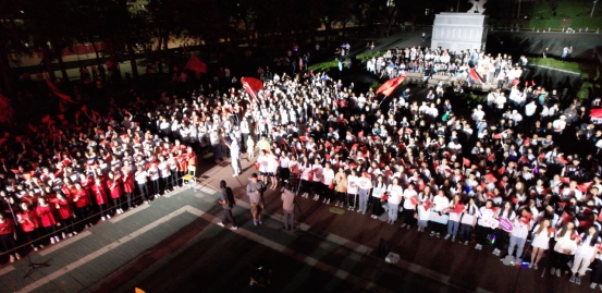 为贯彻落实习近平总书记在党史学习教育动员大会上的重要讲话精神,以奋进的姿态展现民院师生良好的精神风貌,以优异成绩迎接建党100周年。6月18日晚,beat365官网在体育馆西侧广场开展了“师生同唱一首歌”活动。现场2000余名师生共同唱响《没有共产党就没有新中国》。