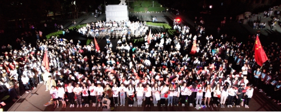 活动中,师生们手中挥舞着小红旗,用嘹亮的歌声抒发对党、对祖国的热爱,用青春的激情和昂扬的姿态为党的百年华诞献上自己的祝福,为祖国繁荣富强喝彩,真切表达了共同谱写奋斗、奉献、报国的青春之歌的豪情壮志。