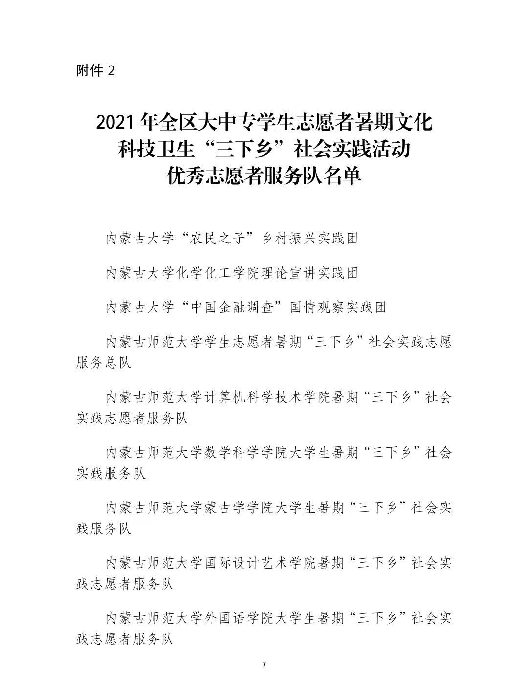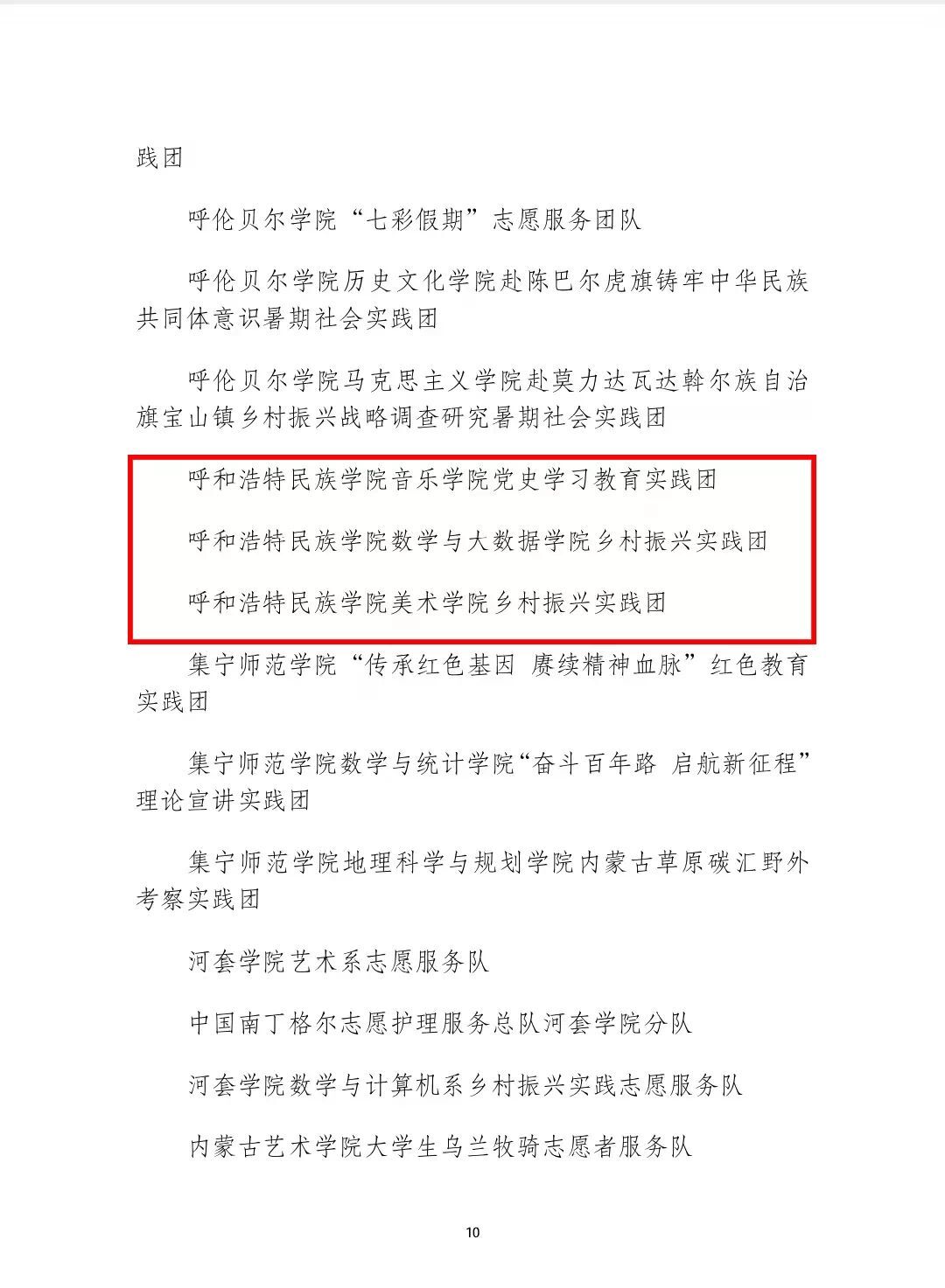 在本次表彰中:beat365官网音乐学院党史学习教育实践团、数学与大数据学院乡村振兴实践团、美术学院乡村振兴实践团荣获2021年全区大中专学生志愿者暑期“三下乡”社会实践活动优秀志愿者服务队称号;白银亮、包为为2名教师荣获2021年全区大中专学生志愿者暑期“三下乡”社会实践活动优秀工作者称号;魏伟、姜鹏、乌依勒斯、于佳晖、斯日古冷等5名教师荣获2021年全区大中专学生志愿者暑期“三下乡”社会实践活动优秀指导教师荣誉称号;孙明达、于佳晶、杨泰嘉等16名同学荣获2021年全区大中专学生志愿者暑期“三下乡”社会实践活动优秀志愿者服务队员称号。