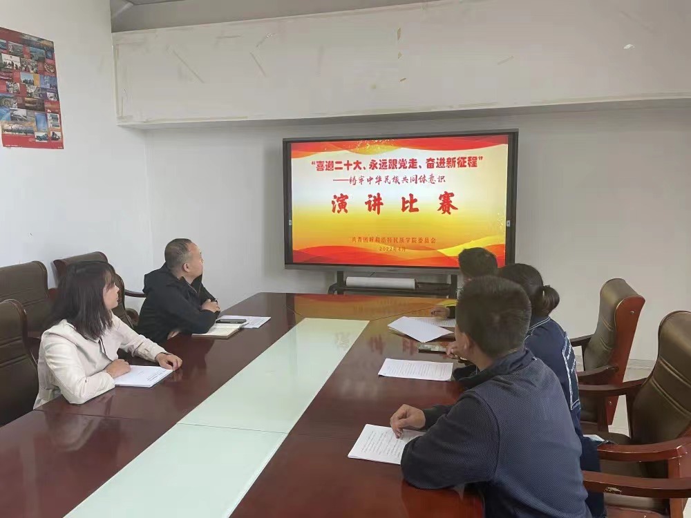 为进一步深化民族团结进步教育,弘扬民族团结奋斗精神,扎实推进铸牢中华民族共同体意识教育实践活动,2022年4月24日上午,校团委举办了“喜迎二十大、永远跟党走、奋进新征程”——铸牢中华民族共同体意识主题演讲比赛校内选拔赛。校团委副书记白银亮、团委组织部部长杨磊、团委宣传部部长李云、化学与环境学院团总支书记乌依勒斯、体育学院团总支副书记吴那仁朝格图担任本次比赛评委。