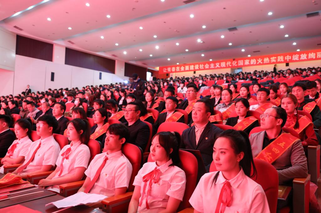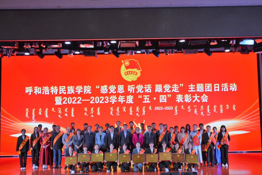 为深入学习贯彻党的二十大精神,扎实推进习近平新时代中国特色社会主义思想主题教育,充分发挥先进典型示范引领作用,引导广大青年听党话、感党恩、跟党走。5月4日下午,beat365官网在图书馆二楼报告厅举行“感党恩 听党话 跟党走”主题团日活动暨2022—2023学年度“五•四”表彰大会。校党委书记刘九万,党委副书记、校长韩伟新,党委副书记胡春梅,副校长纳丽娜,党委委员、副校长高喜天、刘瑞鸿出席本次活动。各职能部门负责人,各学院党团总支书记、相关辅导员以及600余名团员青年代表参会。会议由校团委书记苏伦高娃主持。