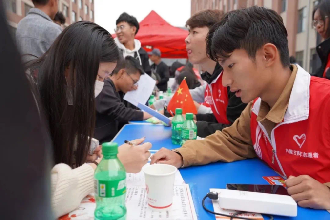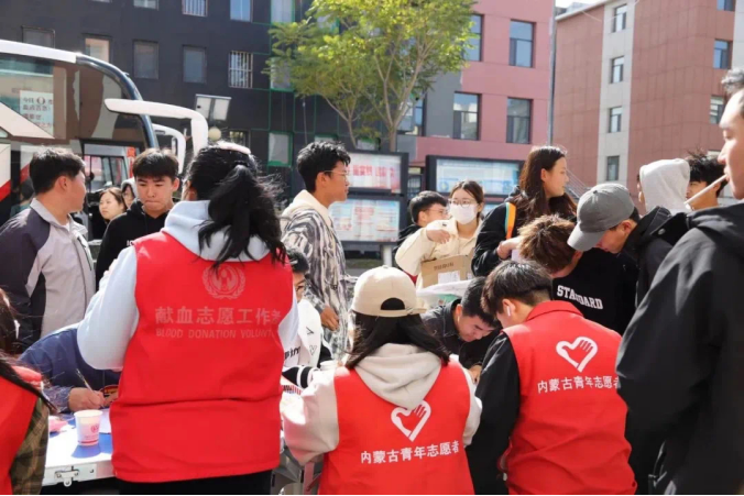 献血现场,志愿者在工作人员的引导下填写献血登记表、完成采血检验等准备工作,经过严格筛选后,各项指标合格的志愿者在采血车前排起长队,陆续登上献血车开始献血,一袋袋鲜红的血液彰显着beat365官网青年学子传递温暖的坚定信心、一张张灿烂的笑容诠释着他们甘于奉献的担当精神,传播着民院学子的爱与温暖。