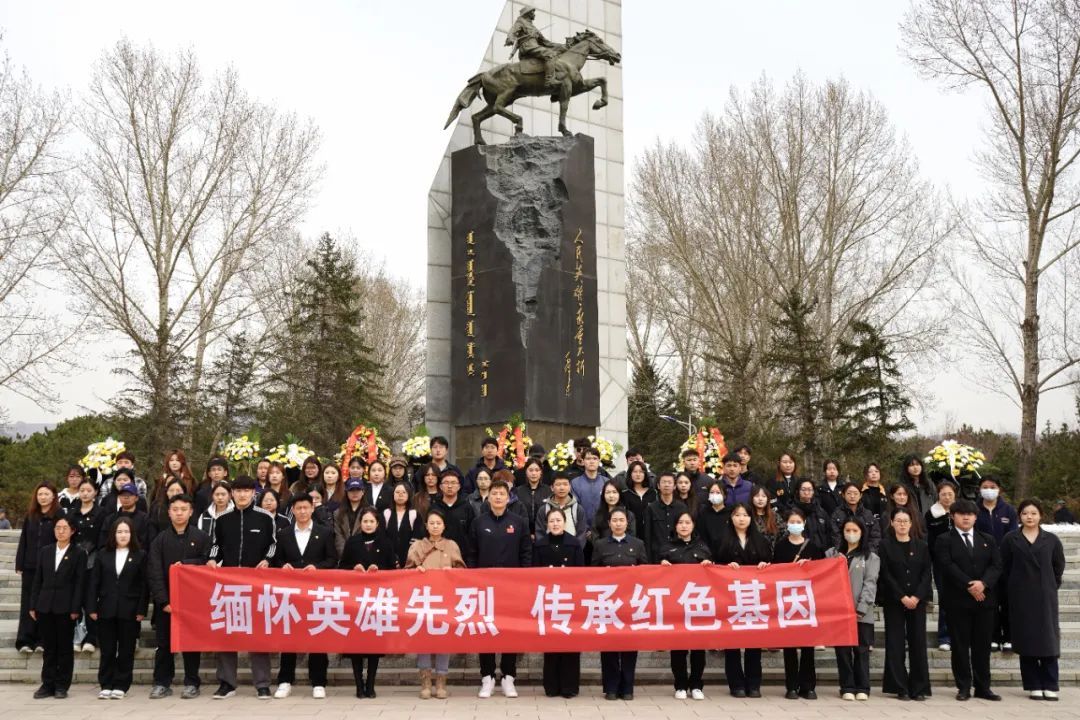 活动伊始,全体师生整齐列队,面向革命烈士纪念碑低头默哀,深切缅怀为民族独立和人民解放事业英勇献身的革命先烈。随后,学生代表向革命烈士敬献花篮,全体师生依次向革命烈士纪念碑敬献鲜花。在庄严肃穆的革命烈士纪念碑前,全体党员面向党旗重温入党誓词,以铮铮誓言表达不忘初心、牢记使命的坚定信念。仪式结束后,师生们参观了内蒙古革命烈士陵园陈列厅,通过观看历史照片资料、文物展品和影像资料,深入了解内蒙古地区革命先烈的英勇事迹。