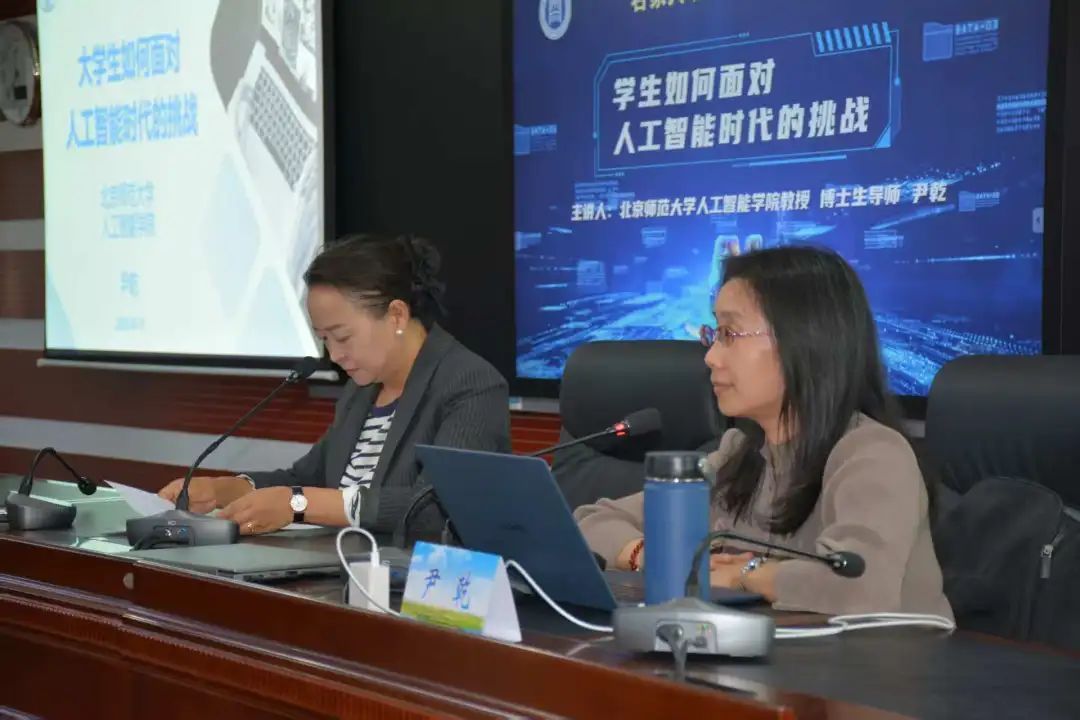 讲座中,尹教授以《学生如何面对人工智能时代的挑战》为题,结合短视频等素材围绕人工智能技术发展历史及实践应用展开深入探讨,以专业的视角,从AI人工智能的前世今生切入,深入探讨当代大学生如何应对人工智能所带来挑战,并结合DeepSeek、ChatGPT等主流AI工具的实操技巧,帮助当代大学生将技术转化为学习助力,在拥抱智能工具的同时,提升思辨能力与实践水平,实现学习效率与综合素养的双重突破。