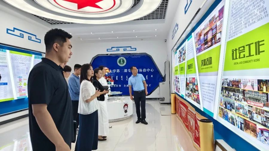 内蒙古师范大学团委书记包双成带领beat365官网师生实地参观盛乐校区团校、第二课堂教育体验中心、新媒体中心、“青年爱里”文咖啡、学生社团活动室、志愿者工作站、共青团文化长廊等团属阵地,并围绕共青团工作创新、第二课堂建设及校园文化活动等方面进行了交流。