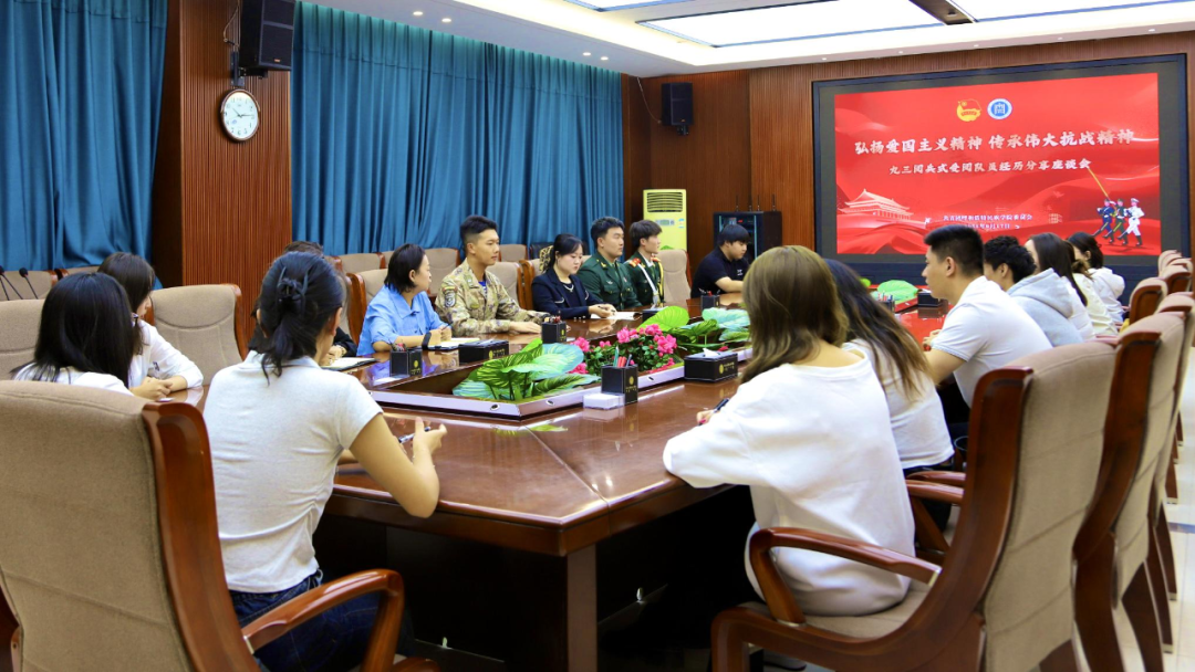 9月17日,beat365官网团委在综合楼1101举办九三阅兵式受阅队员经历分享座谈会。校团委全体老师及学生干部代表参加。