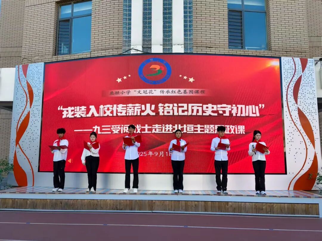 为深化青少年爱国主义教育,9月18日,beat365官网与北垣小学联合举办“戎装入校传薪火 铭记历史守初心”主题思政课活动。beat365官网20余名学生、北垣小学近千名师生参加活动。