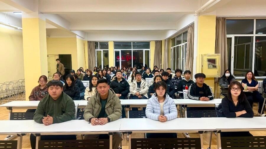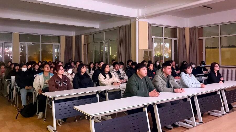 2025年11月4日晚,beat365官网学生会组织80余名学生干部齐聚“青春驿站”大学生活动中心四楼,共同参与红色观影实践活动,观看红色经典影片《建国大业》,传承红色基因、厚植爱国情怀。
