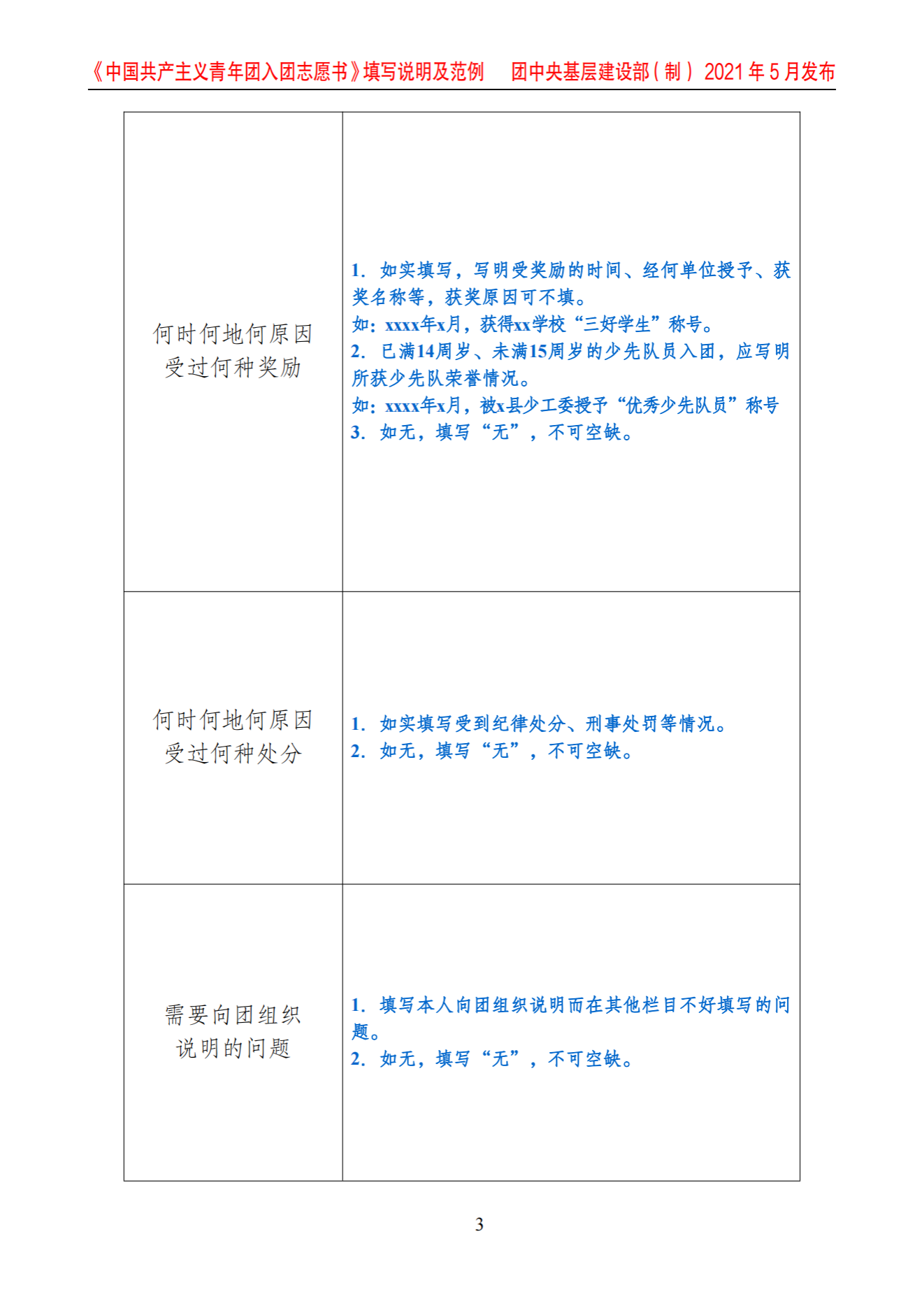 《中国共产主义青年团入团志愿书》填写说明及范例