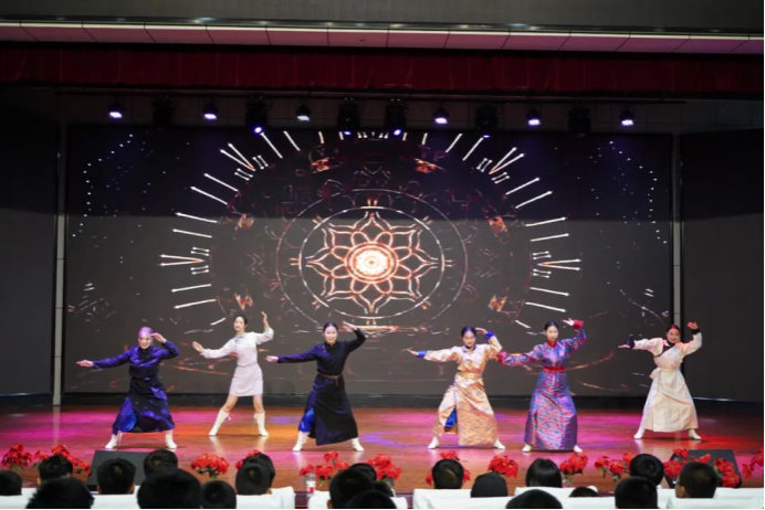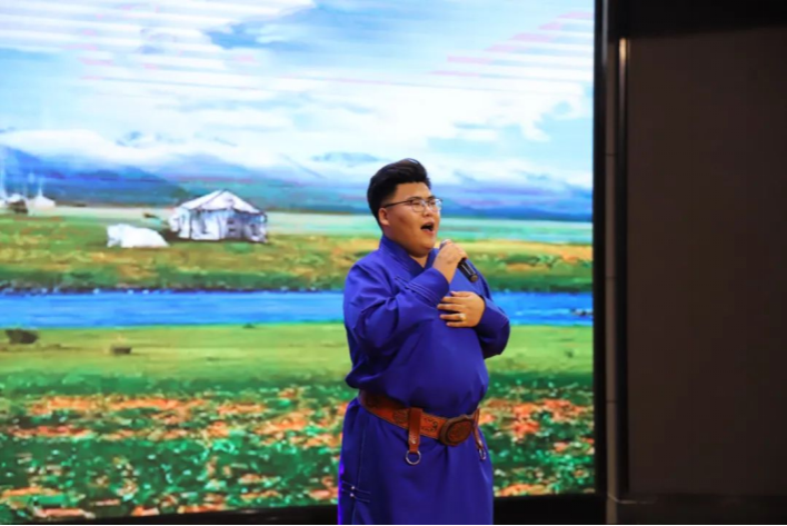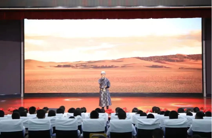 晚上,社会实践团在多伦县职业教育中心礼堂进行交流演出。在歌曲《草原上升起不落的太阳》的悠扬歌声中缓缓拉开序幕,舞蹈《传承》的出演,更是点缀了整个会场,将动感的音乐节奏与翩跹舞姿完美融合,鲜艳的服饰裙袖翻飞,给观众们带来了一场美伦美奂的视觉盛宴,一首《草原等你来》博得同学们阵阵热烈的掌声;舞蹈《致敬》将现场氛围带向了高潮,最后,在长调歌曲《牧歌》中圆满落下帷幕。