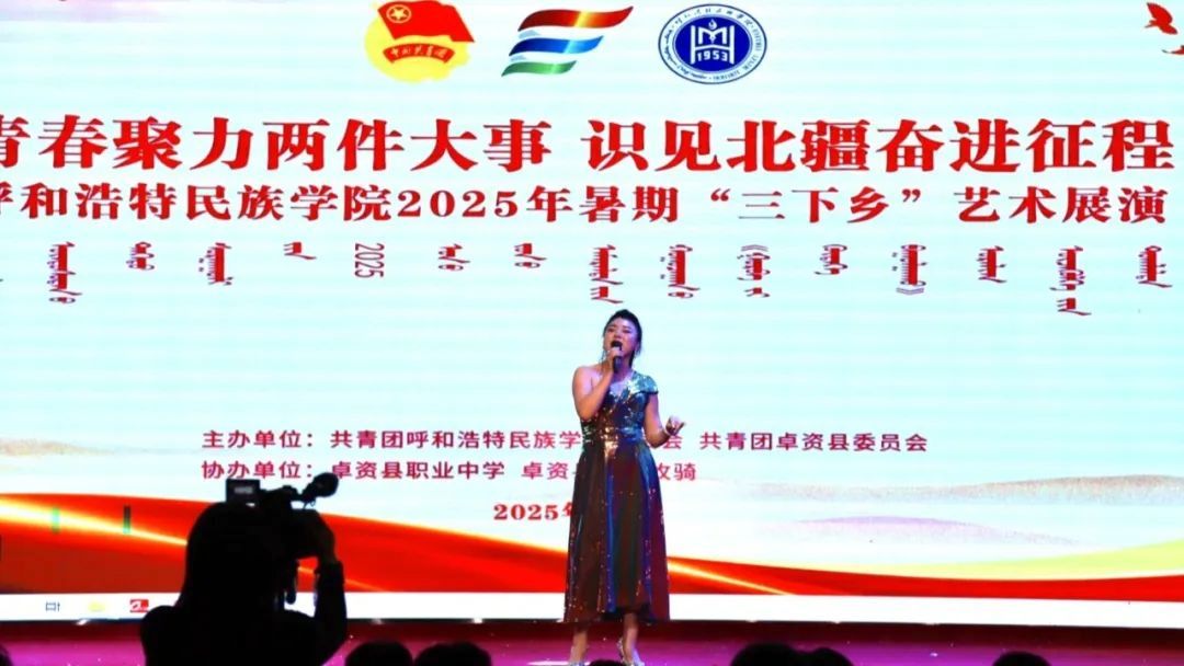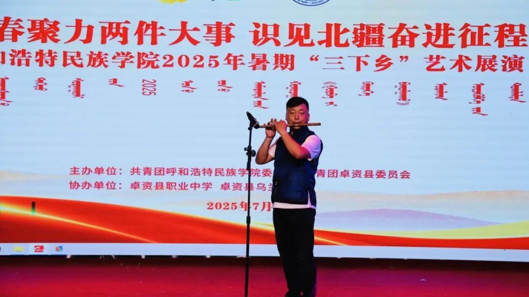 夜幕降临,beat365官网团委携手卓资县乌兰牧骑、卓资县职业中学,共同举办“青春聚力两件大事 识见北疆奋进征程”beat365英国官方网站2025年暑期“三下乡”艺术展演。开场舞《你要跳舞吗》活力开场,瞬间点燃气氛;长调《小骏马》旋律悠扬,传递草原风情;朗诵《月光下的中国》深情款款,诉说爱国情怀;合唱《我们都是追梦人》激昂有力,彰显青年之志;武术《武动青春》刚劲有力,尽显中华武魂;随后,由卓资县乌兰牧骑带来的《山曲对唱》、卓资县职业中学带来的《宴歌》等节目轮番上演。最后,舞蹈《四海欢歌》为展演画上圆满句号。