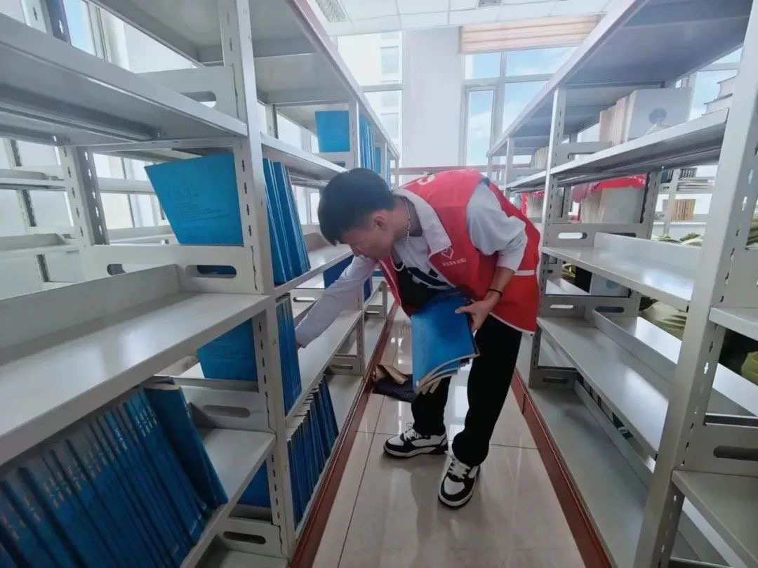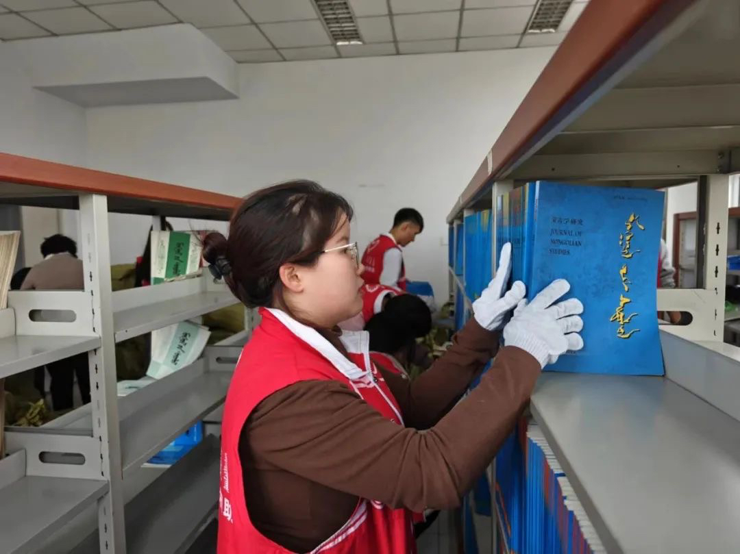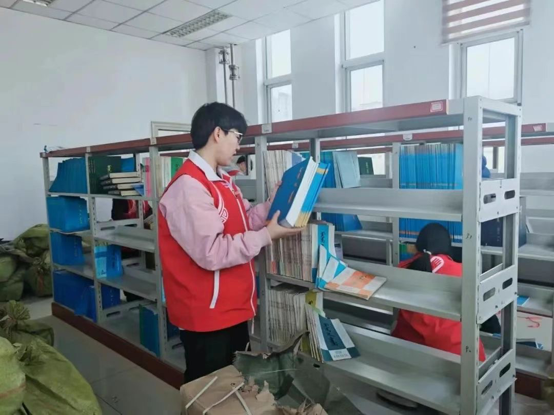 活动中,志愿者们协助编辑部的老师们将图书进行分类、排序,并摆放书架,确保为广大师生营造整洁明亮的阅读与学习环境。