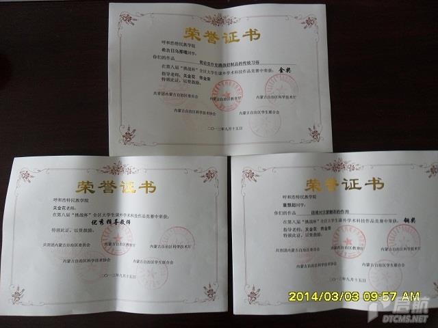 2014年第八届全区“挑战杯”大学生课外学术科技作品竞赛中我院学生喜获金奖,铜奖