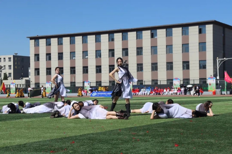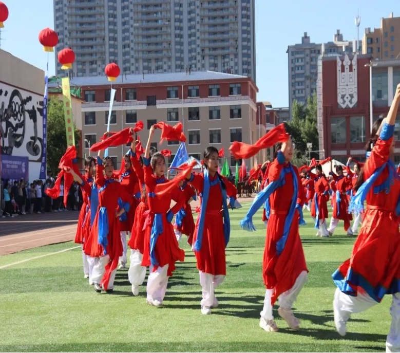 随着舞蹈的谢幕,男子二重唱《红旗飘飘》也响彻在校园的每一个角落,红旗飘扬献祖国,草原儿女共奋进,一段段动听的旋律唱响了同学们的爱国情怀,唱出了新时代青年积极向上的精神风貌。