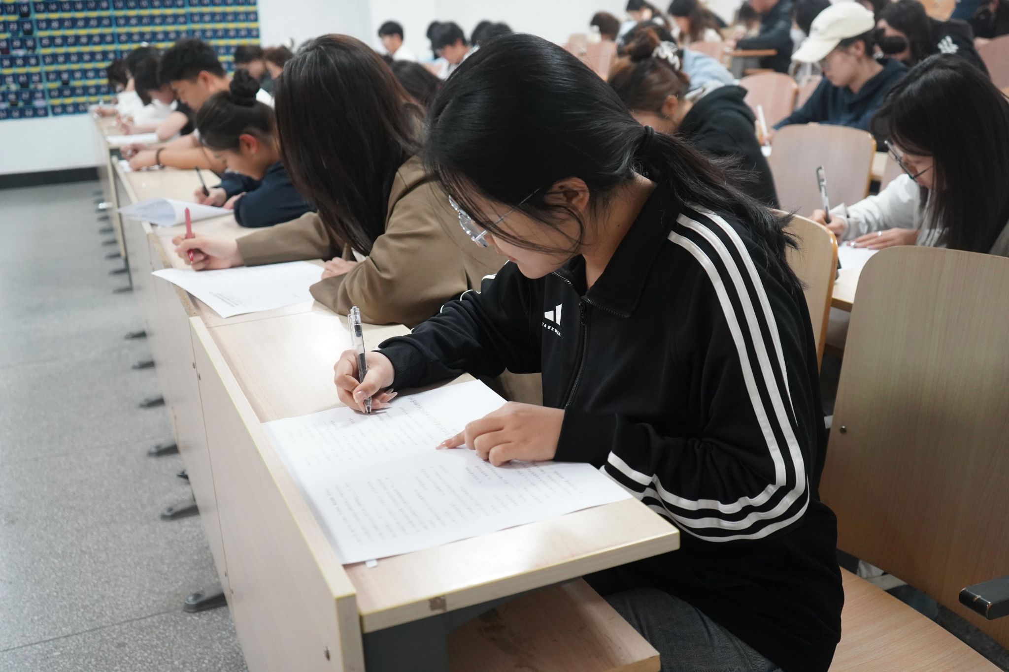 笔试选拔坚持高标准、严要求,聚焦政治素养、理论水平、实践能力等核心要素,全面考察学生的政治判断力、理论转化力和综合分析能力。笔试现场,秩序井然,同学们严格遵守考场纪律,目光专注,神情认真,他们仔细审题、从容作答,在试卷上书写对党的理论知识的深刻理解,展现出扎实的理论功底和良好的精神风貌。
