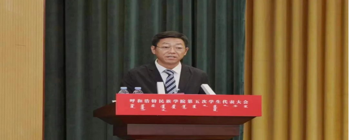 校党委委员,副校长高喜天代表学校党委、行政向大会的召开表示热烈的祝贺,向全校广大青年学生致以诚挚的问候和美好的祝愿,对各级学生组织的工作给予充分肯定,同时对广大青年提出了四点希望:一是要坚定理想信念,用实际行动践行中华民族一家亲;二是要发奋成长成才,用新作为彰显青春风采;三是希望大家努力发挥作用,做学校发展的有力助手;四是希望各位代表聚焦主责主业,争做学生成长成才的"知心人",团结带领广大同学在实现中华民族伟大复兴中国梦的历史征程中,在落实和完成好习近平总书记交给内蒙古的五大任务和全方位建设“模范自治区"工作中,在奋力开创学校各项事业快速发展新局面过程中,成长成才、奉献青春、贡献力量。