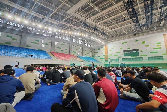825日晚,在体育馆三楼召开体育学院2024秋季开学全体学生大会。大会由学院党总支副书记白图日根主持,班主任、辅导员及全体学生参会。