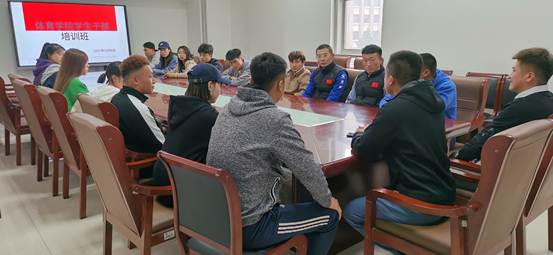 为增强学生会组织的战斗力,进一步发挥学生干部的带头作用,促进学生的自我管理,自我教育,自我服务,自我监督。体育学院团总支书记吴那仁朝格图老师、学工办主任苏日古嘎老师于2021年10月8日组织学院学生会全体成员及各在校班级班长和团支部书记在体育馆三楼会议室召开了体育学院学生干部培训班。