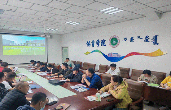 3月27日,体育学院于体育馆三楼会议室召开本科教育教学质量提升年会议精神转达与自评报告学习会,全体教职工齐聚一堂,共商学院发展要事,会议由院长乌日根牧仁主持。