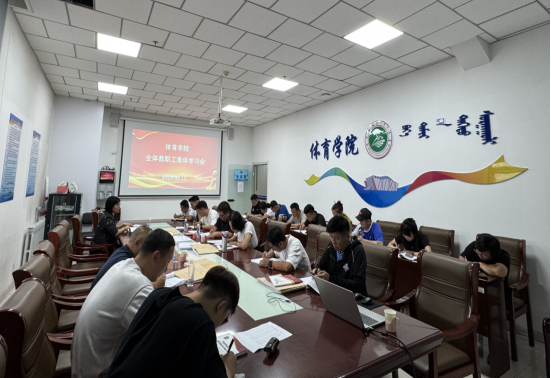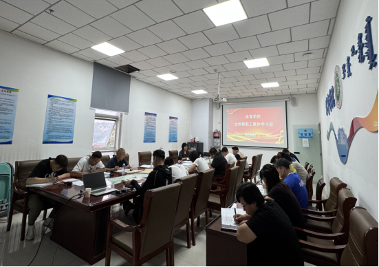 9月11日下午,体育学院在体育馆三楼会议室召开全体教职工集体学习会,会议由学院党总支书记萨日胡主持,全体教职工参会。
