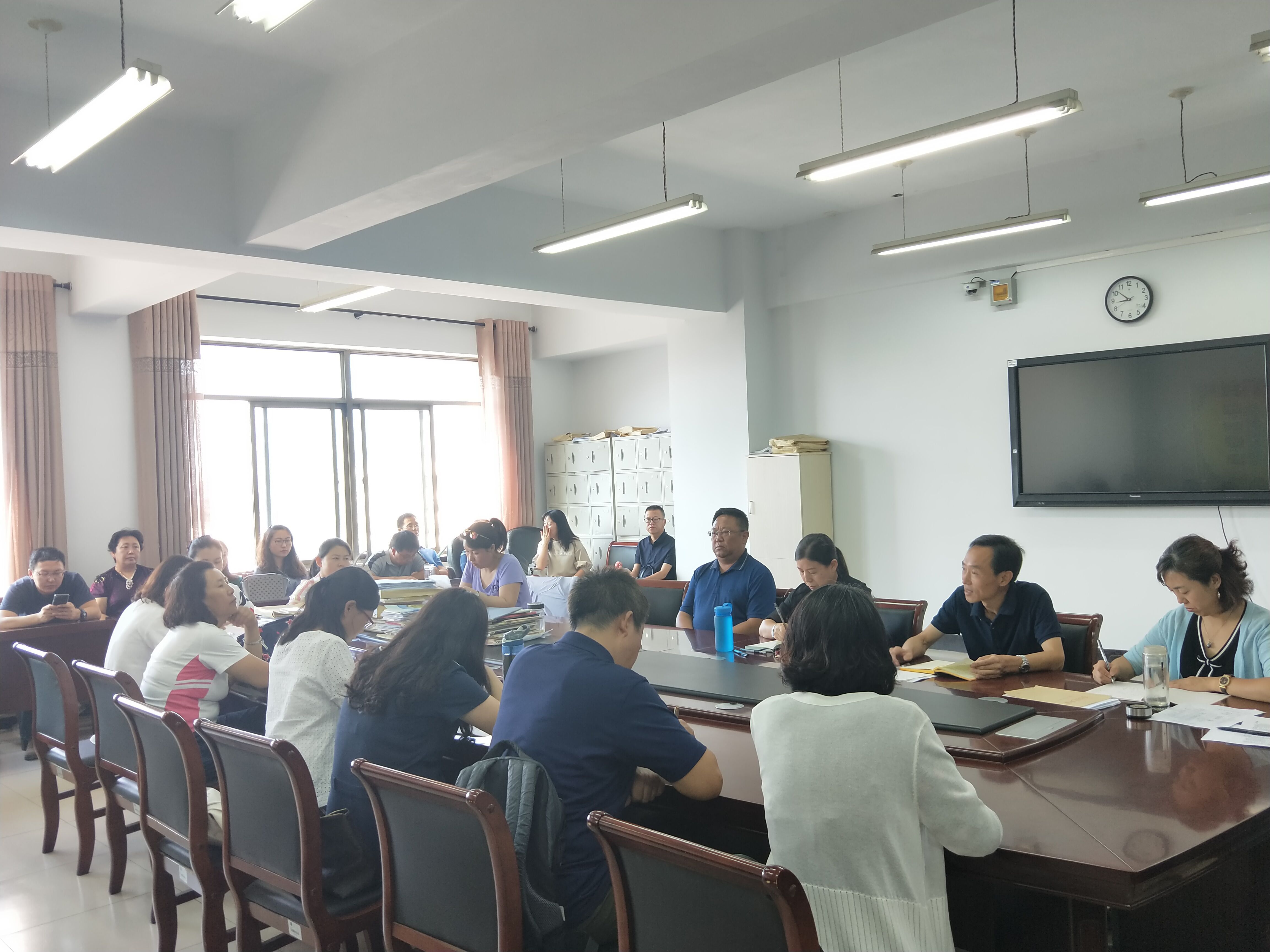 2018年8月24日上午,外语系在系会议室召开学期初教学工作会议。会议由系主任肖查娜主持,外语系党总支书记布和朝鲁、副书记红梅、副主任苏日嘎拉图、全体在编教师及外聘教师参加了会议。