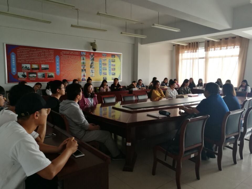 2017年9月15日上午10:30,外语系在系会议室组织召开了2014级考研学生座谈会。会议由外语系肖查娜主任主持,外语系党总支布和朝鲁书记、外语系2014级考研班班主任高乌兰老师、外语系2014级考研学生近50人参加了会议。