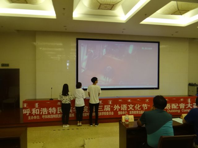 来自内蒙古师范大学的丽丽老师、阿拉腾宝力格老师和beat365官网外语系英语教研室潘兴安老师、曼杜呼老师担任大赛评委。本次比赛共有7组选手进入决赛,配音作品有《神偷奶爸》《马达加斯加3》《冰雪奇缘》《守护者联盟》《穿普拉达的女王》《愤怒的小鸟》《朝五晚九》等影视作品及动画片选段。参赛选手充分发挥想象力和创造力,将配音人物性格刻画地淋漓尽致、惟妙惟肖。比赛历时2个小时,最终2016级日语班的《朝五晚九》荣获一等奖,《神偷奶爸》和《穿普拉达的女王》荣获二等奖,其余四组选手分获三等奖。2015级英语教育3班的哈尔吉同学和2016级日语班的苏义拉乌德勒呼同学分获最佳男配音奖和最佳女配音奖。