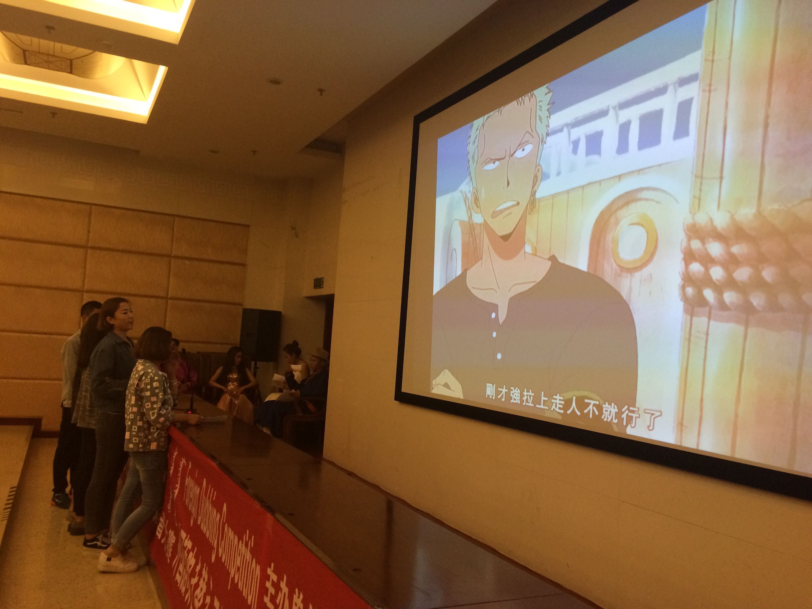 伴随着大屏幕上的外文电影画面,8组参赛选手依次展露流利的外语口语和娴熟的配音技能。比赛分专业与分专业两组展开角逐,最终希吉日等带来的节目《海贼王:新伙伴的加入》 获得专业组一等奖;于璇等带来的节目《头脑特工队》、孙思雨等带来的节目《疯狂动物城》分别获得专业组二等奖;张娟娟等带来的节目《小王子》、尹雪婷等带来的节目 《疯狂原始人》 分别获得专业组三等奖。而非专业组一等奖被法律系乌音嘎带来的节目《主题动画》斩获;环境系辛佩峰带来的节目《傲骨贤妻》、环境工程系徐帅等带来的节目《马达加斯加》分获得非专业组二等奖。此外,《马达加斯加》中为狮子配音的徐帅同学获得最佳男配音奖,《海贼王:新伙伴的加入》中为罗宾配音的希吉日同学获得最佳女配音奖。