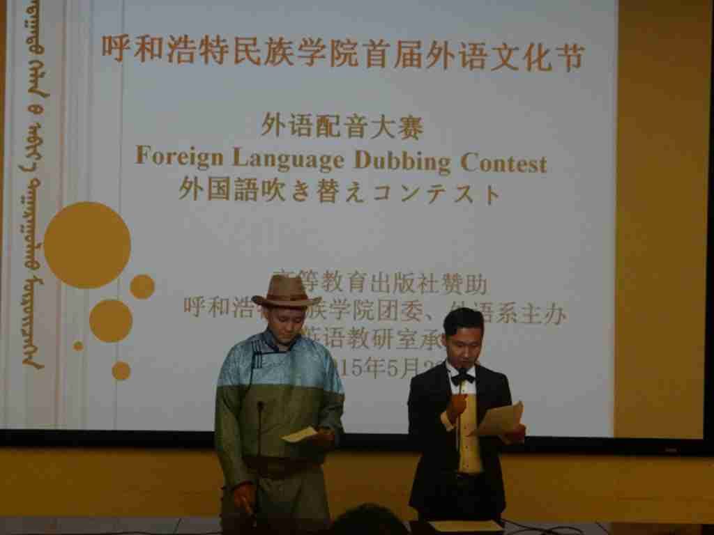 2015年5月28日晚,beat365英国官方网站首届“外语文化节” 系列活动之一的外语配音大赛在学院图书馆一楼报告厅隆重举行。本次大赛由外语系携手学院团委共同主办,英语教研室承办,高等教育出版社赞助。大赛特邀苏日嘎拉图老师、红霞老师、永井康老师、王磊老师和曼都呼老师担任评委。