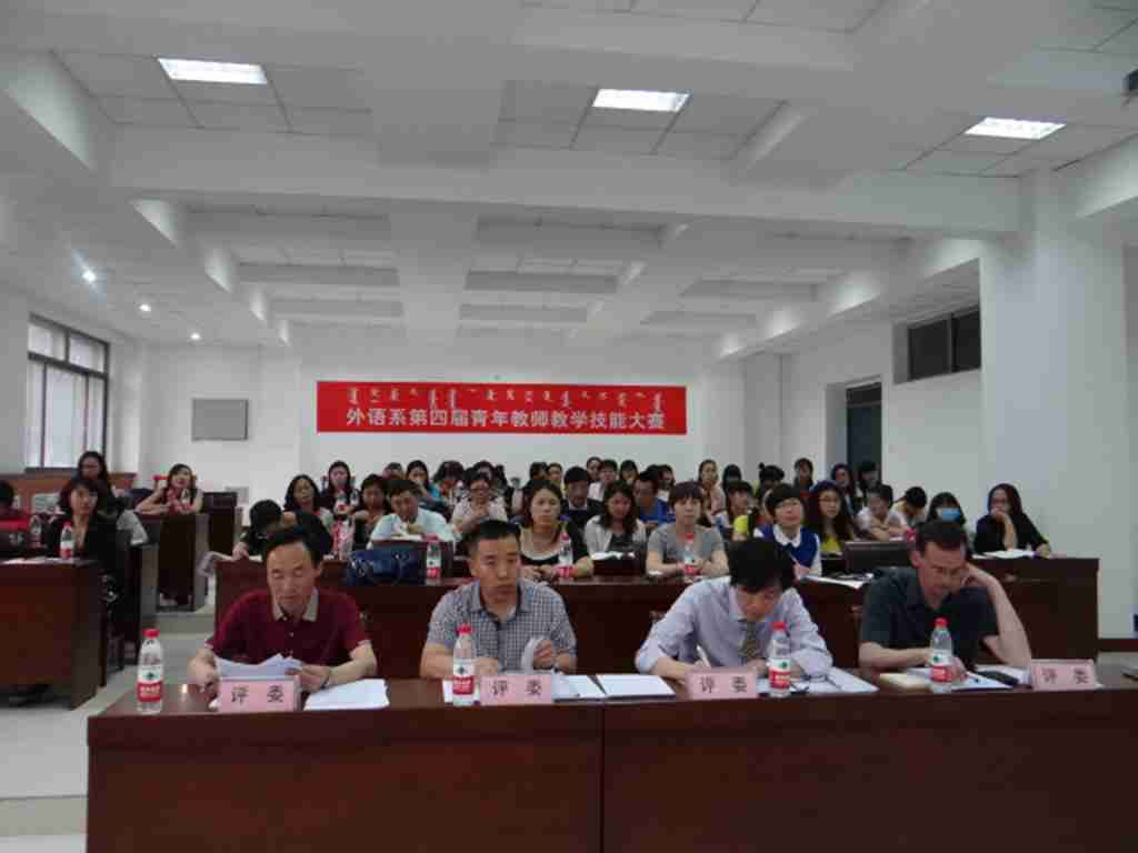 活动第二阶段为第四届青年教师教学技能大赛。2015年5月26日晚,在第一阶段听课评教比赛中脱颖而出的8名教师在新教学楼106教室进行了激烈的角逐。外语系苏日嘎拉图副主任、内蒙古师范大学外国语学院副教授、北京外国语大学应用语言学博士白音那老师、日籍教师永井康、美籍教师乔纳森担任比赛评委。参赛教师全部采用课件授课,分别完成了13——15分钟的讲授环节和5——10分钟的说课环节。比赛历时三个多小时,8位参赛教师充分贯彻精讲多练、多元互动、听说领先的外语教学原则,合理设计教学方案,精心组织课堂活动,灵活运用教学方法,展现出良好的精神风貌和高水平的业务能力。最终白红梅老师夺得一等奖;吴丹老师、曼杜呼老师分获二等奖;乌云斯日古楞老师、涛歌老师、陈永清老师分获三等奖。